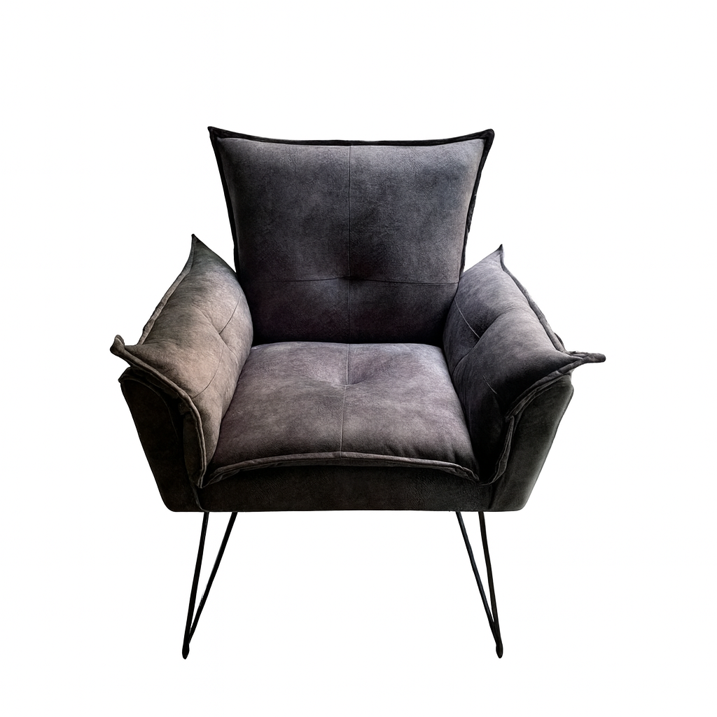 הרגליים הדקות בעיצוב מתכתי אלגנטי מעניקות לכורסה מראה יוקרתי ויציב המתאים לכל חלל — סלון, חדר שינה או פינת קריאה מעוצבת.
