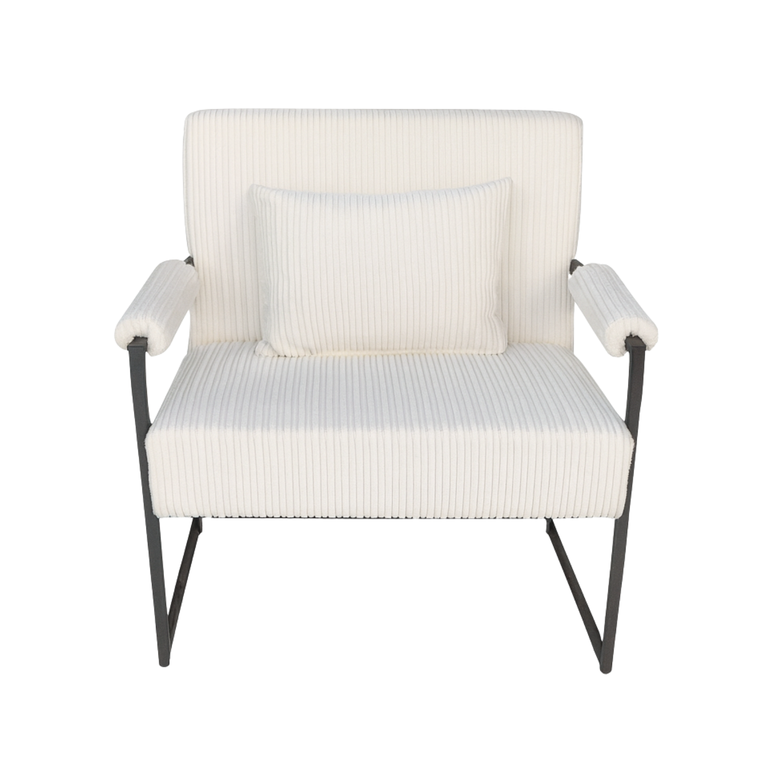הכורסה מרופדת בבד איכותי בעל טקסטורה רכה ונעימה למגע, עם תמיכת גב מושלמת וכרית תואמת להשלמת חוויית הישיבה.