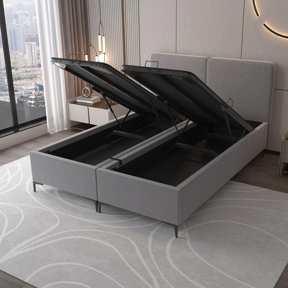 בכל צד של המיטה נמצא ארגז מצעים מובנה ורחב, עם מנגנוני בוכנות איכותיים להרמה קלה ונוחה, המאפשרים אחסון נוח של מצעים, כריות ושמיכות.