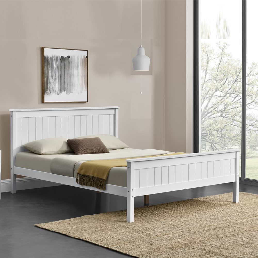 מיטה זוגית 140×190 ס"מ בעיצוב קלאסי ונקי, עשויה עץ אורן מלא איכותי השומר על מראה טבעי ועמידות לאורך שנים.