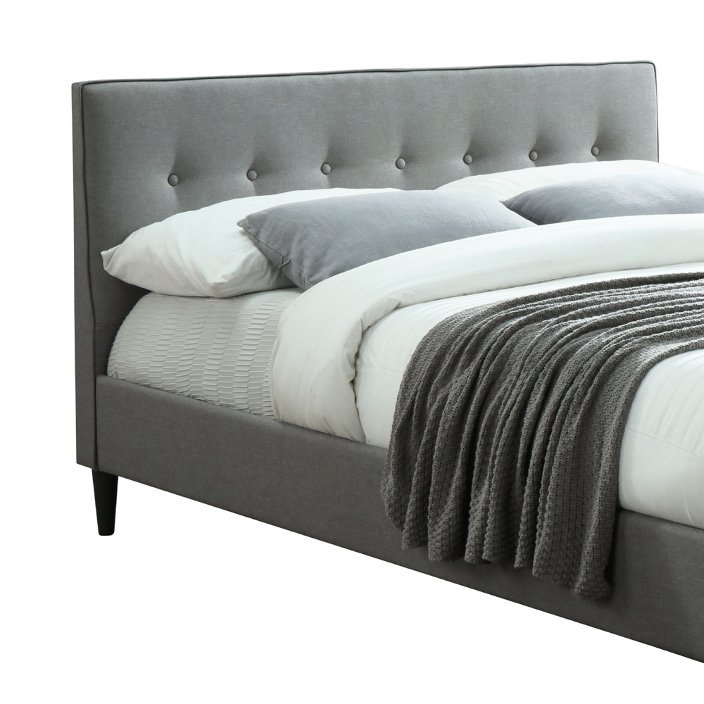 ראש המיטה כולל תפרי נוי וכפתורי דקורציה להשלמת המראה האלגנטי.