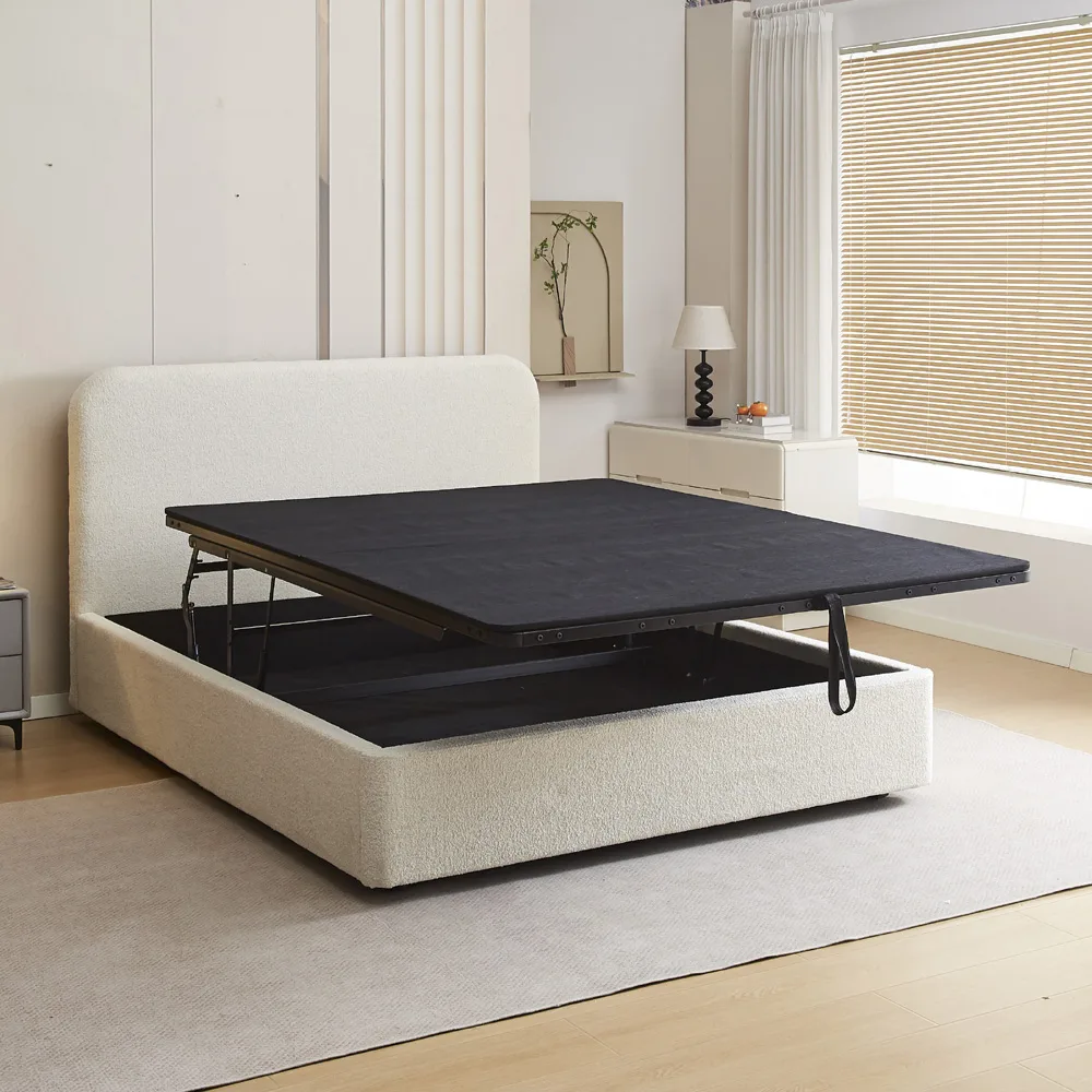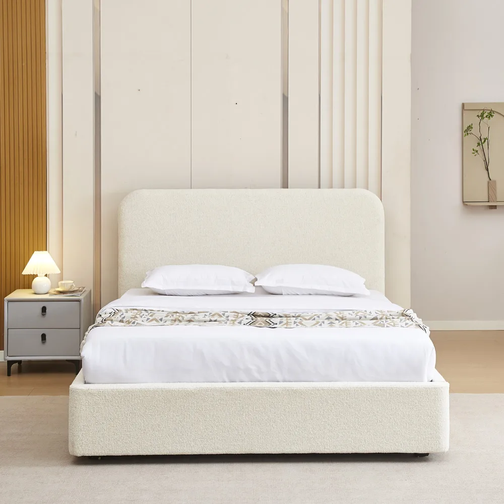 מיטה זוגית 140×190 מרופדת בד בוקלה עם ארגז מצעים בשיטת "ריחוף" דגם Luna Cream