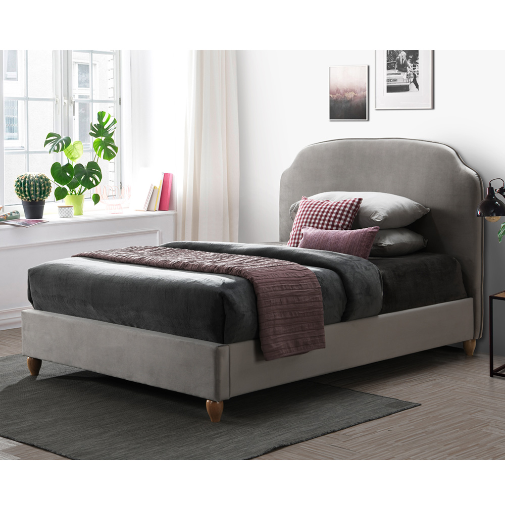 מיטת זוגית 140×190 ס"מ בעיצוב מודרני ויוקרתי, מרופדת בד קטיפתי רך ונעים למגע המעניק לחדר השינה מראה חמים ואלגנטי.