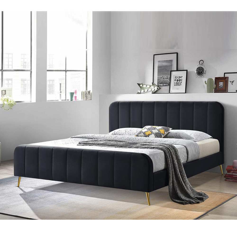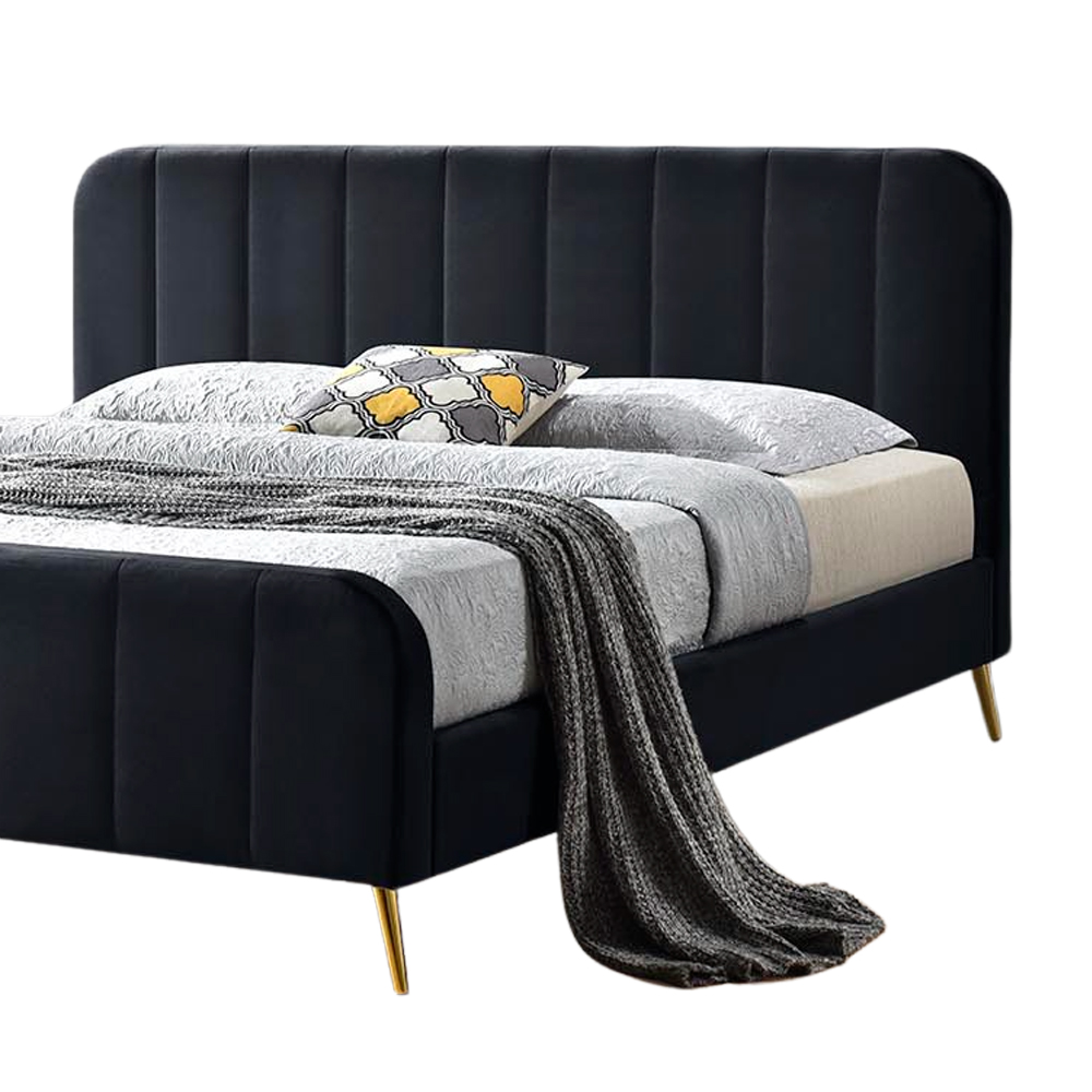 מיטה זוגית 140×190 ס"מ בעיצוב יוקרתי ונועז, מרופדת בד קטיפתי רך ונעים למגע בכל חלקי המיטה – כולל בראש המיטה המרשים.