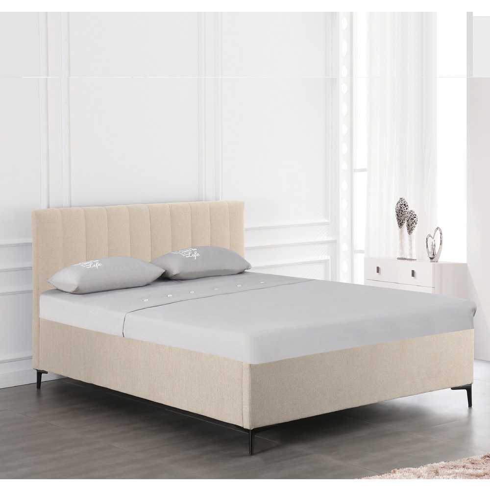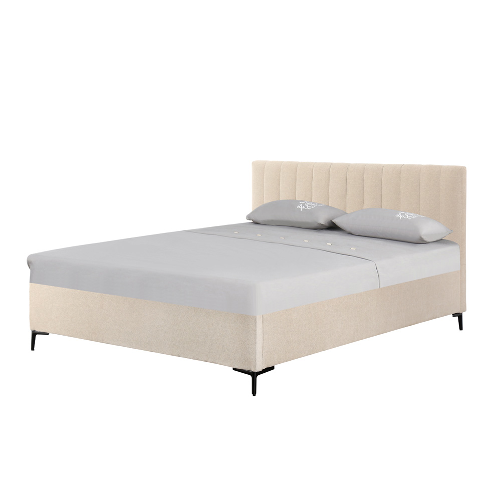 המיטה מגיעה בגוון קרם בהיר, המעניק לחדר השינה מראה חמים, רגוע ויוקרתי.