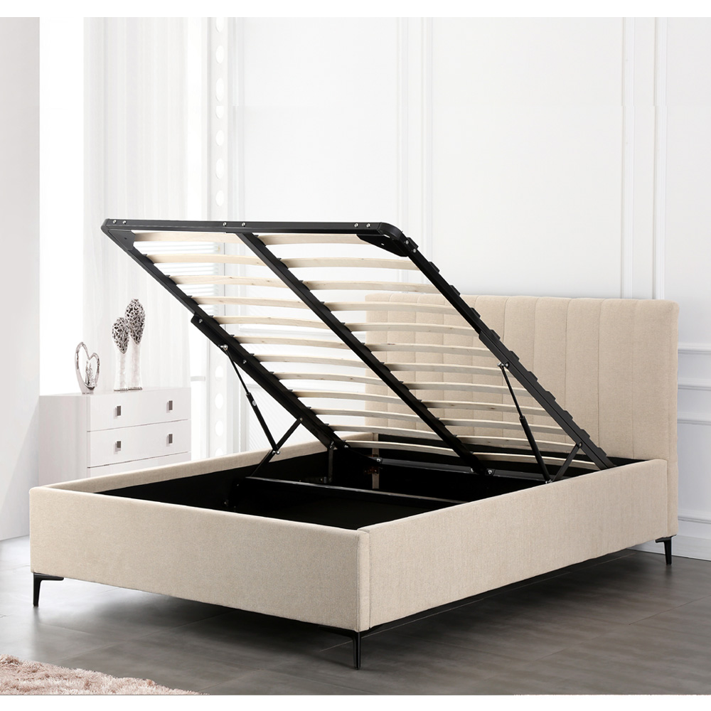 המיטה כוללת ארגז מצעים מובנה ומרווח, הנפתח מחזית באמצעות מנגנוני בוכנות איכותיים להרמה קלה ונוחה.